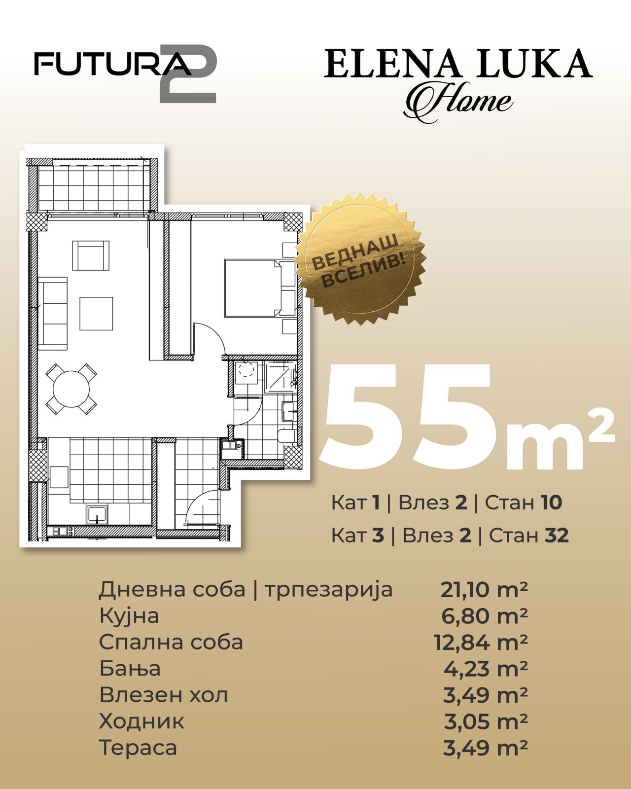 Токму затоа, станот од 55м² во FUTURA 2 од ELENA LUKA HOME се издвојува како вистинска реткост на пазарот.